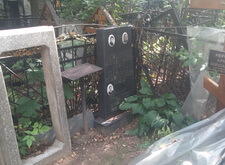 Могила стандартная, не большая. Когда-то здесь стоял гранитный памятник и была высокая ограда. После очередного захоронения плиту убрали в сторону, цветник тоже подняли, переднюю часть ограду демонтировали, установили временный крест.